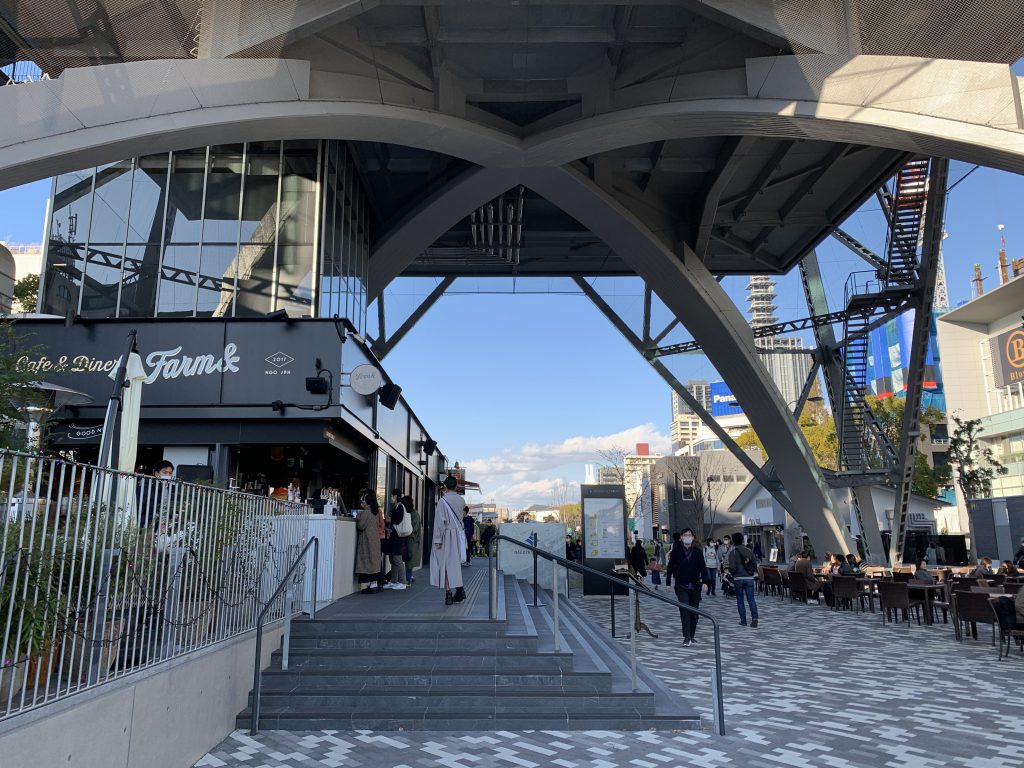 左手に見える楕円形は先ほど紹介したオアシス21です。