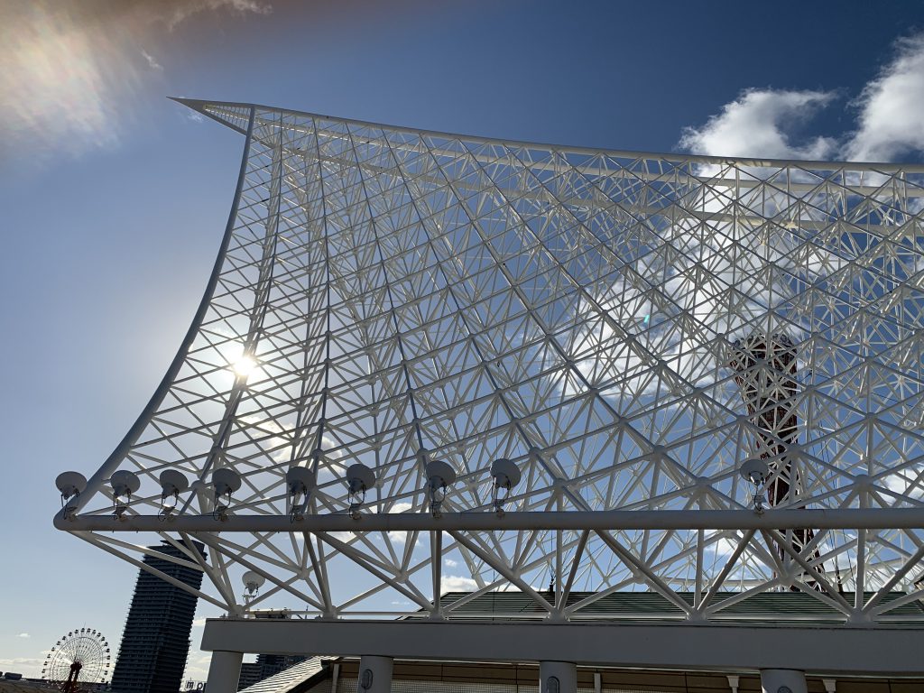 高さ22m、隣のカフェなどが入った複合施設の建物と比較するとその大きさがより伝わるかと。