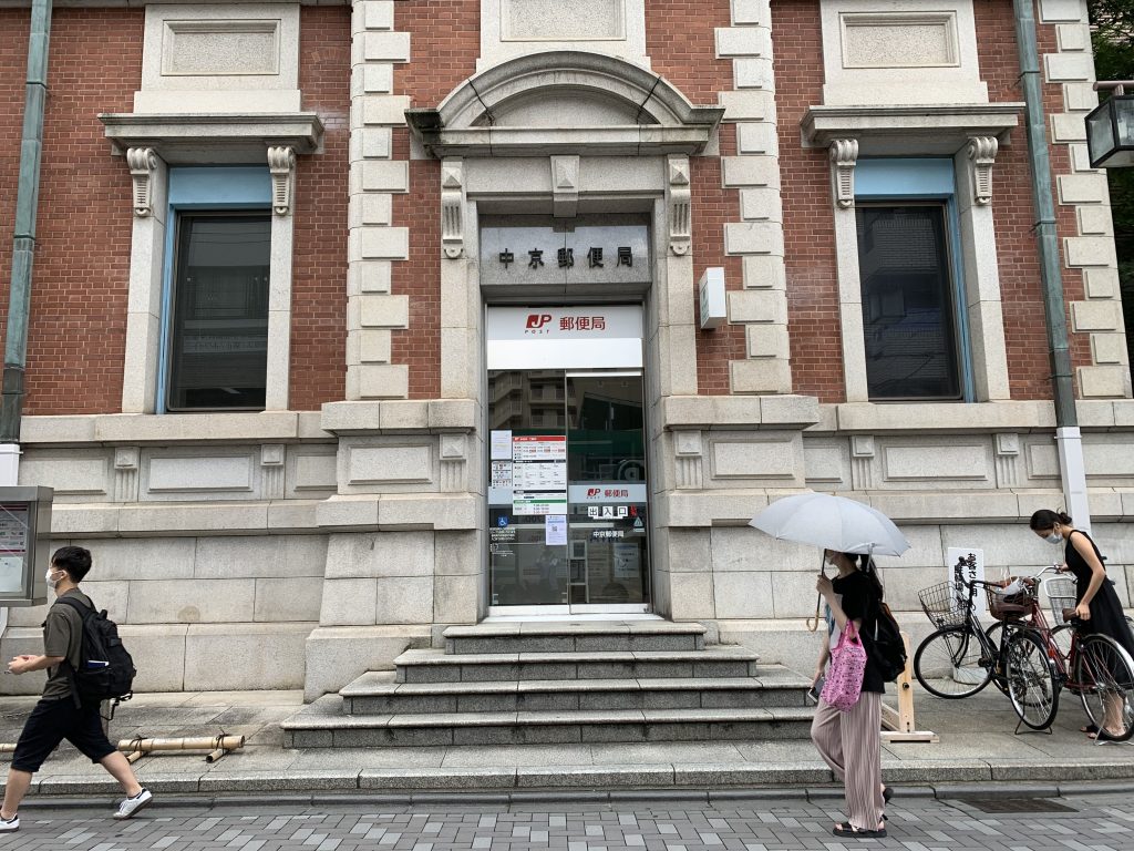 新風館を東に抜け、南へ行くと三条通で中京郵便局(旧京都中央郵便局)にたどりつきます。